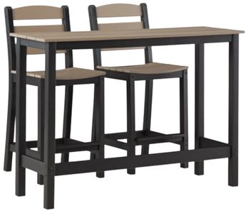 This counter table and bar stool set is an expert blend of durability and style. Made with a sturdy wood-look material, it keeps your patio or porch on trend with a neutral two-tone finish. And with its counter height design, the set perfectly pairs with your outdoor grilling station or bar.Read More